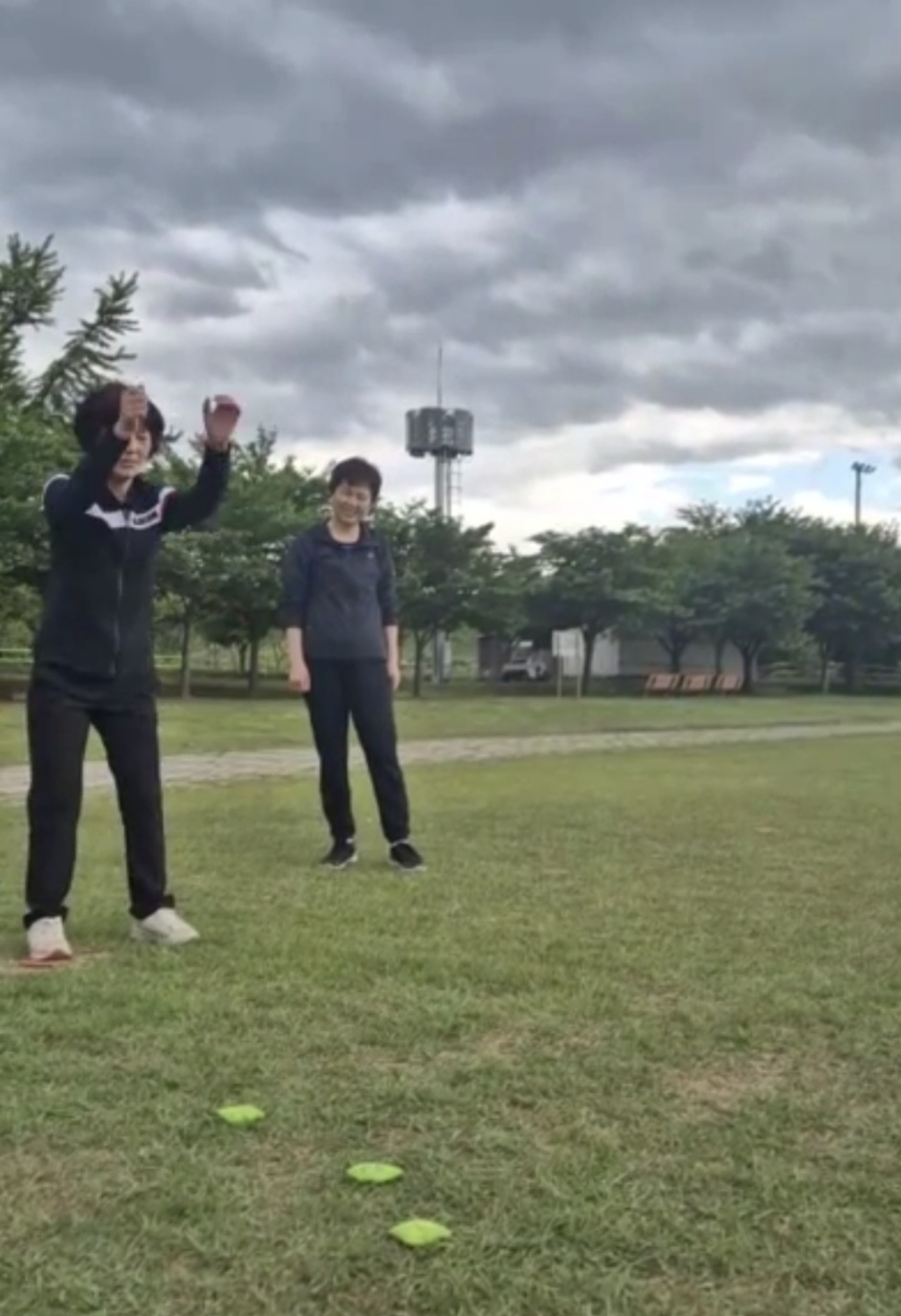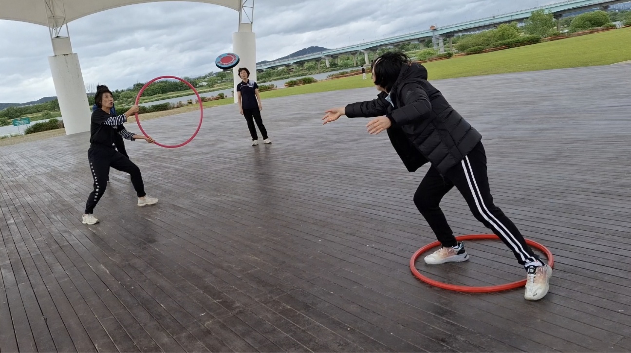 원반던지기는 2인 1조 4팀으로 게임을 한 결과 우승 최숙이 임지영 6점 취득