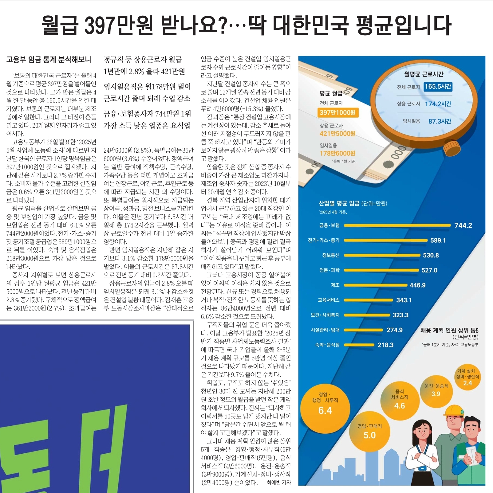 | 평균 월급 | 전체 평균 397.1만 원, 정규직은 421.2만 원 |