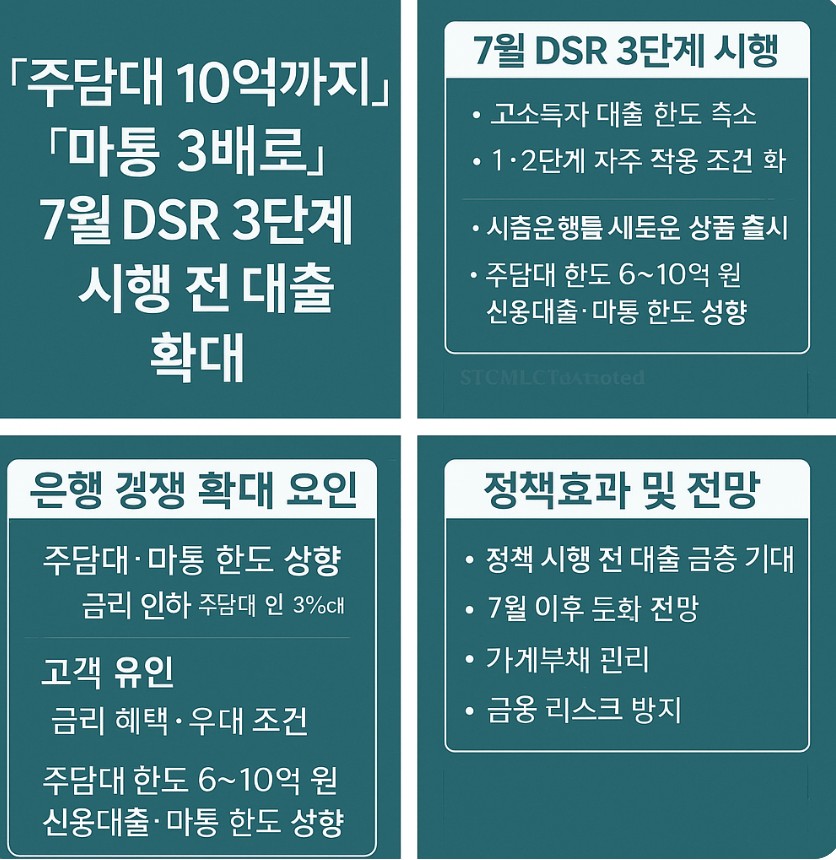 - 주담대 한도 상향: 일부 은행은 최대 10억 원까지 확대.