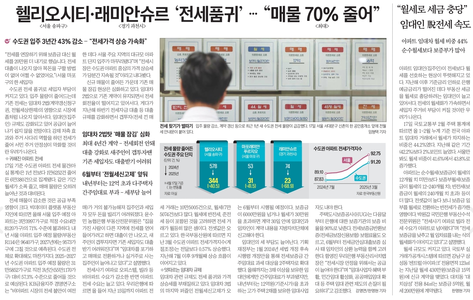 5. 헬리오시티. 래미안슈르 '전세품귀' -- "매물 70% 줄어"