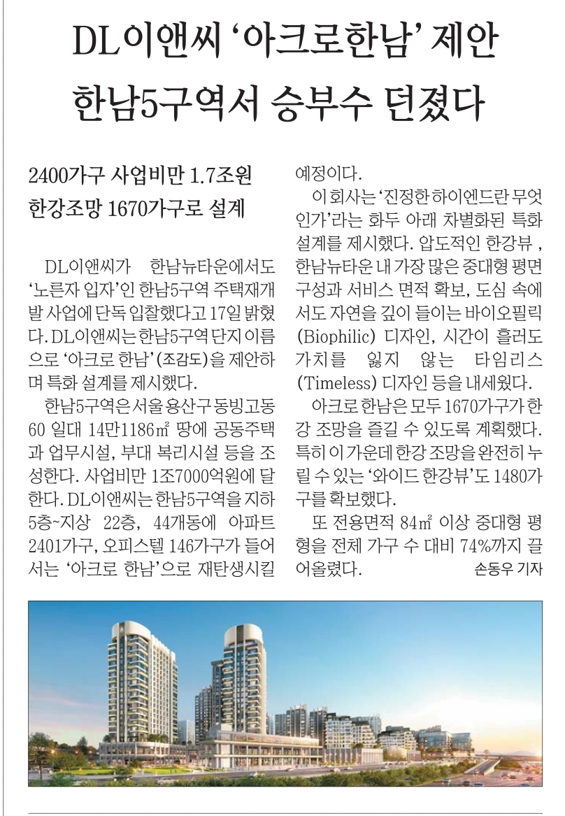 7. DL이앤시 '아크로한남' 제안 한남5구역서 승부수 던졌다