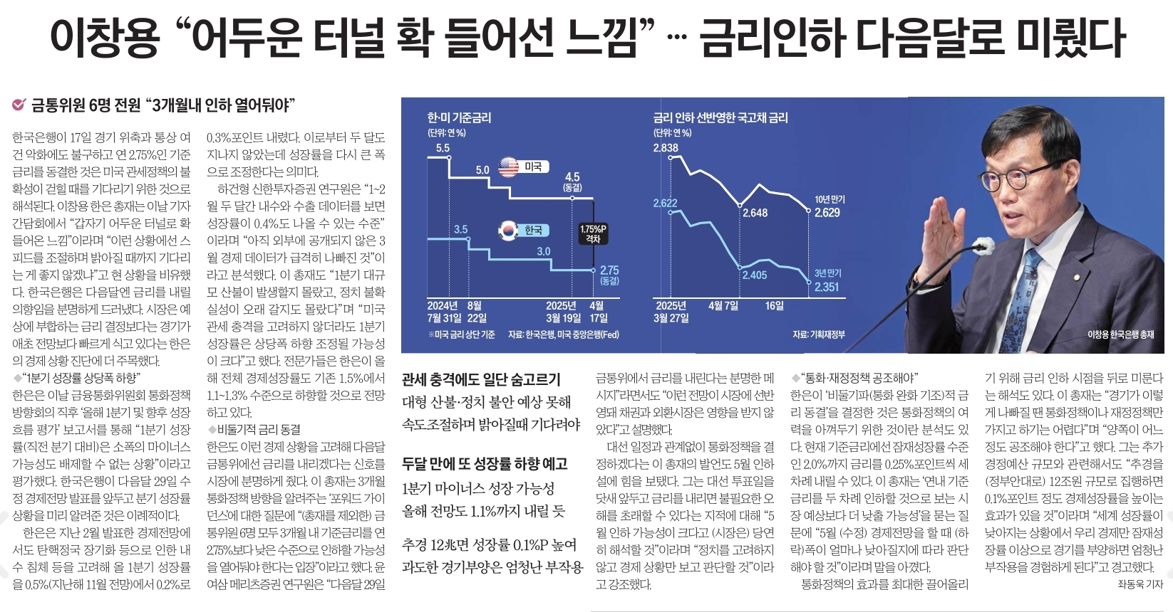 29. 이창용 "어두운 터널 확 들어선 느낌" 금리인하 다음달로 미뤘다