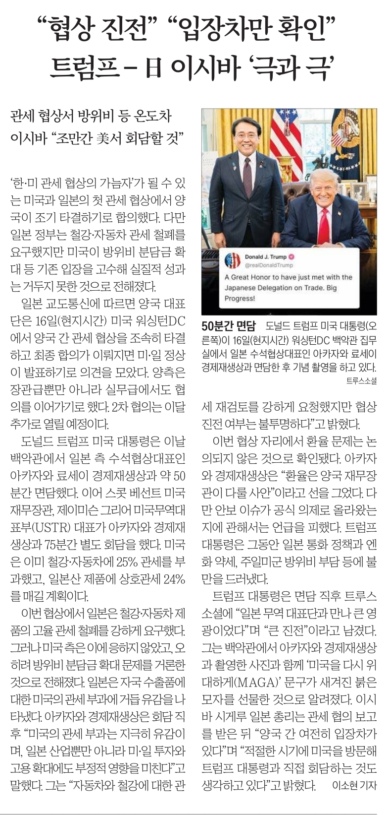 28. "협상진전" "입장차만 확인" 트럼프 -- 日 이시바 '극과 극'