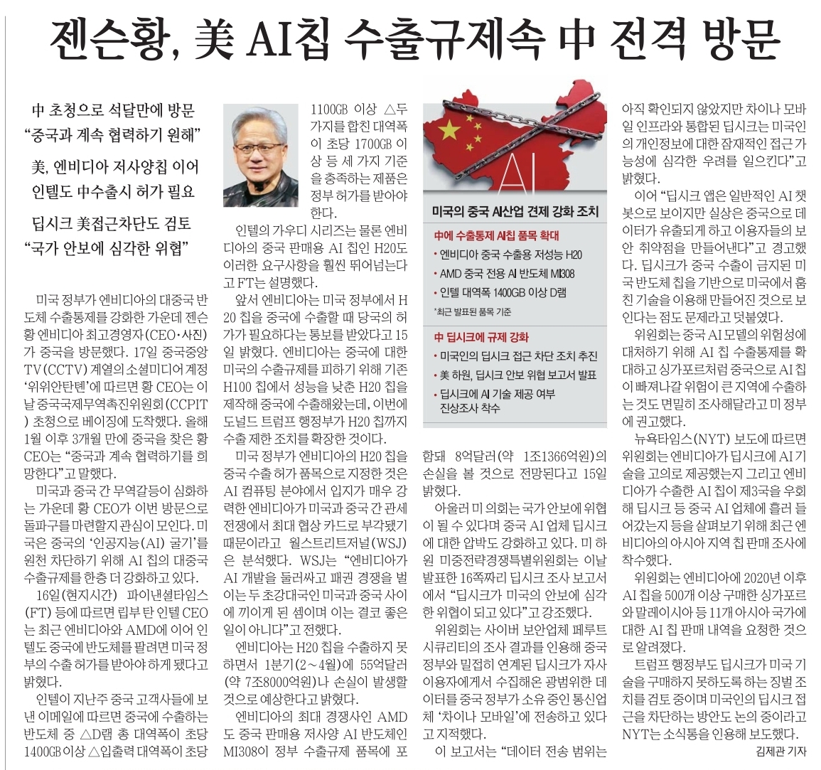 25. 젠슨황, 美 AI칩 수출규제속 中전격 방문