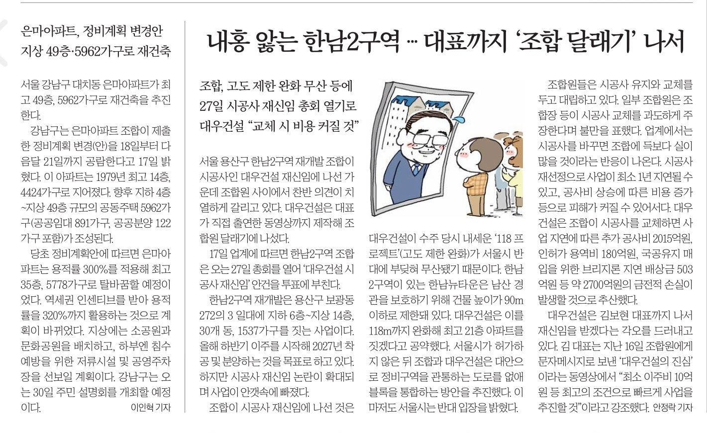 8. 내흥 앓는 한남2구역 -- 대표까지 '조합 달래기' 나서