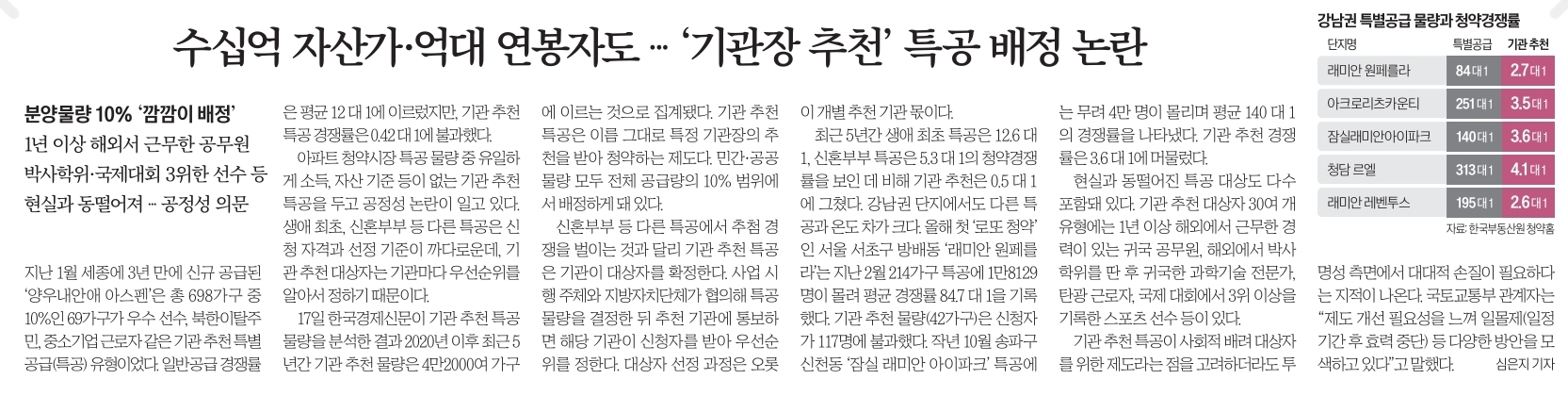 6. 수십억 자산가. 억대 연봉자도 -- '기관장 추천; 특공 배정 논란