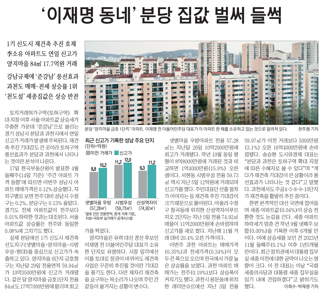 2. '아재명 동내' 분당 집값 벌써 들썩