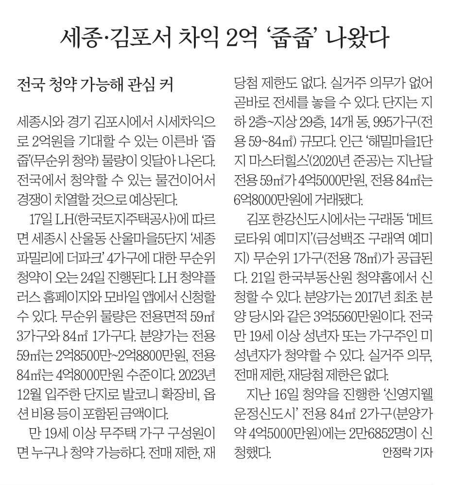 10. 세종. 김포서 차익 2억 '줍줍' 나왔다