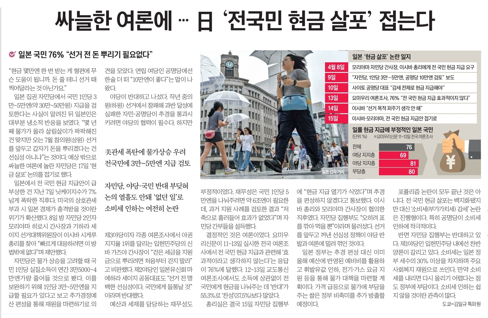 26. 싸늘한 여론에 -- 日 '전국민 현금 살포' 접는다