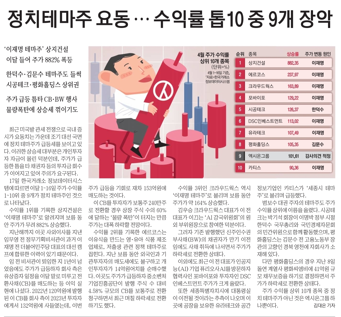 14. 정치테마주 요동 -- 수익률 톱10중 9개 장악