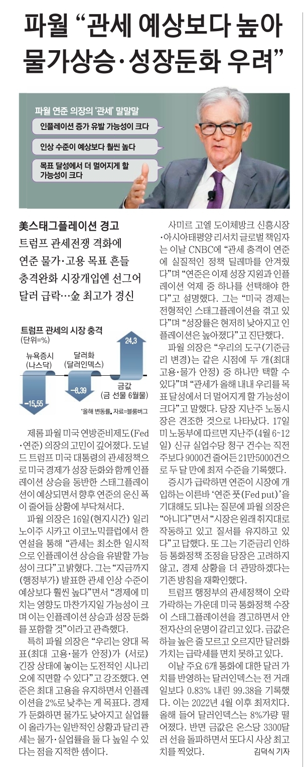 23. 파월 "관세 예상보다 높아 물가상승 . 성장 둔과 우려"