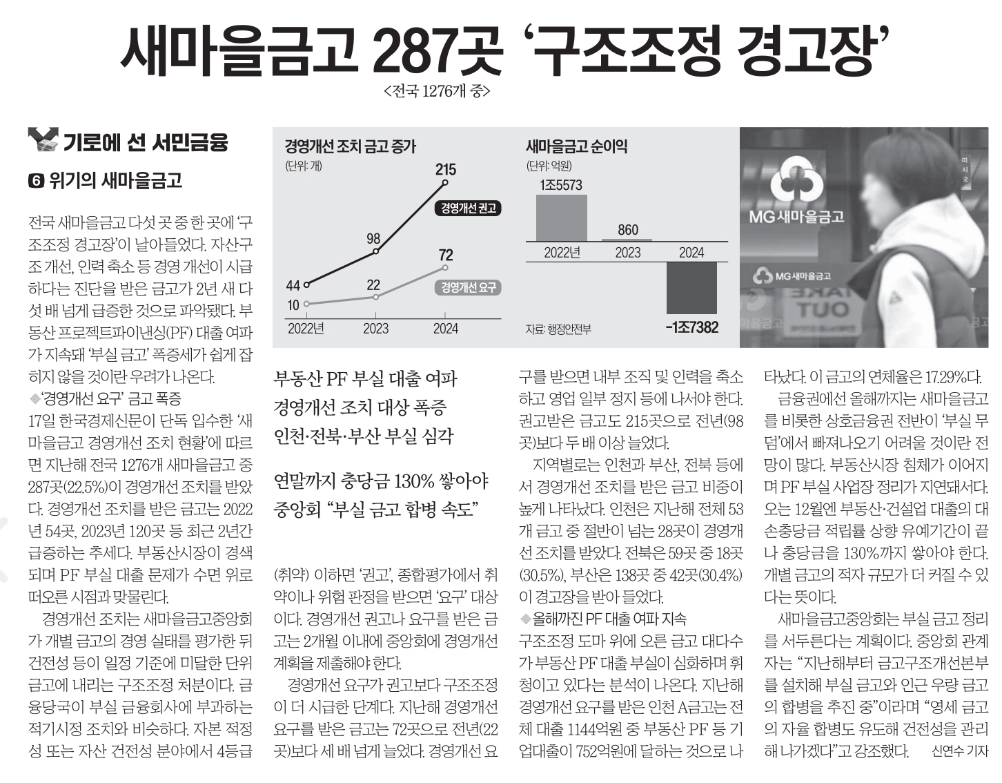 13. ㅅ마을금고 287곳 '구조조정 경고장'