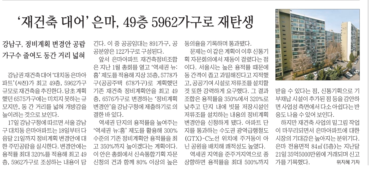 3. '재건축 대여'은마, 49층 5962가구로 재탄생
