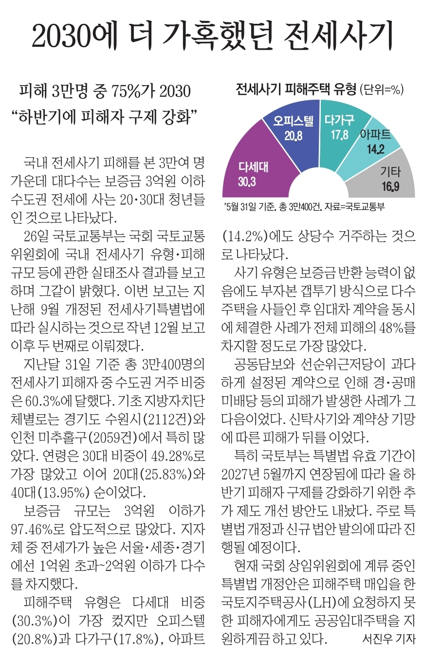 - 국토교통부 보고: 전세사기 실태조사 결과를 국회에 보고 (5월 31일 기준)