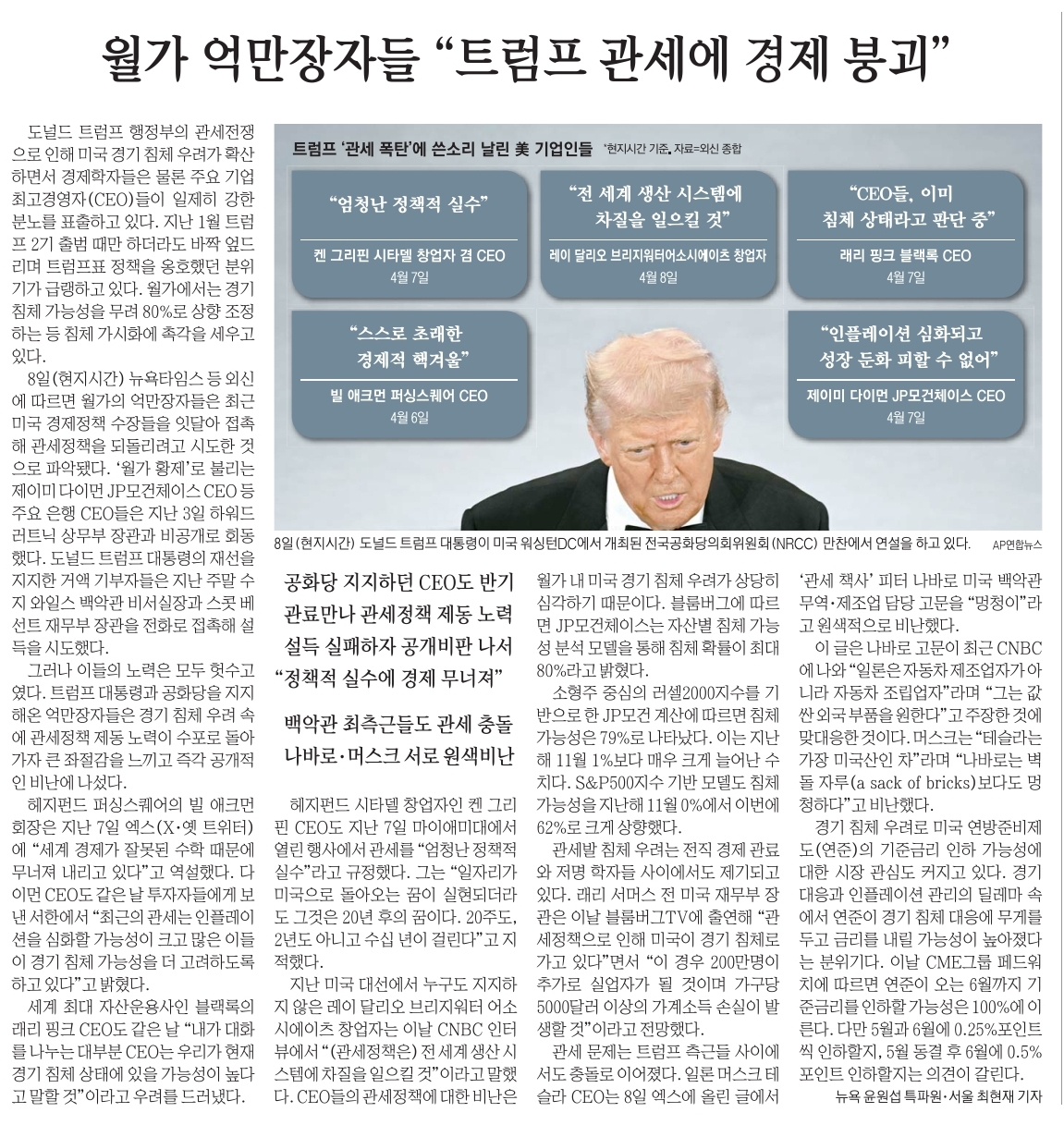 28. 월가 억만장자들 "트럼프 관세에 경제 붕괴"
