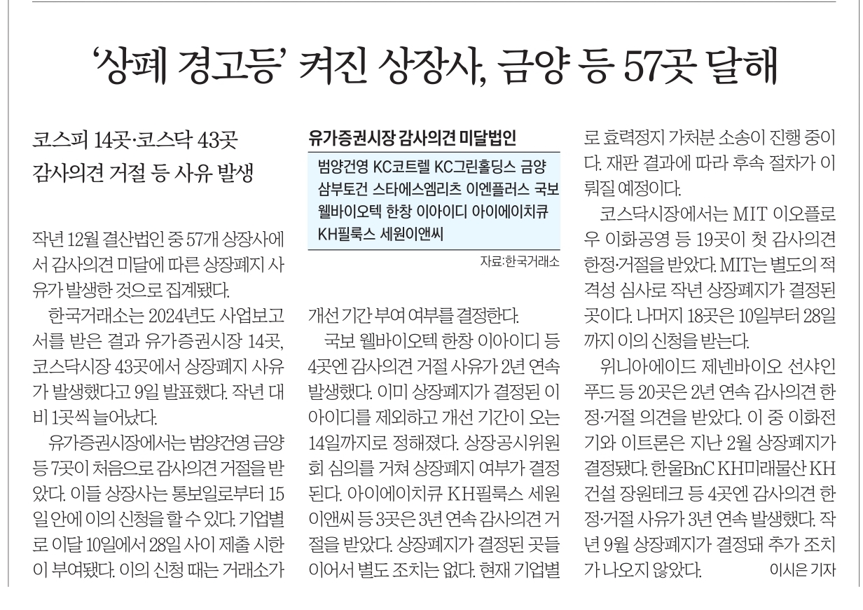 19. '상폐 경고등'켜진 상장사, 금양등 57곳 달해