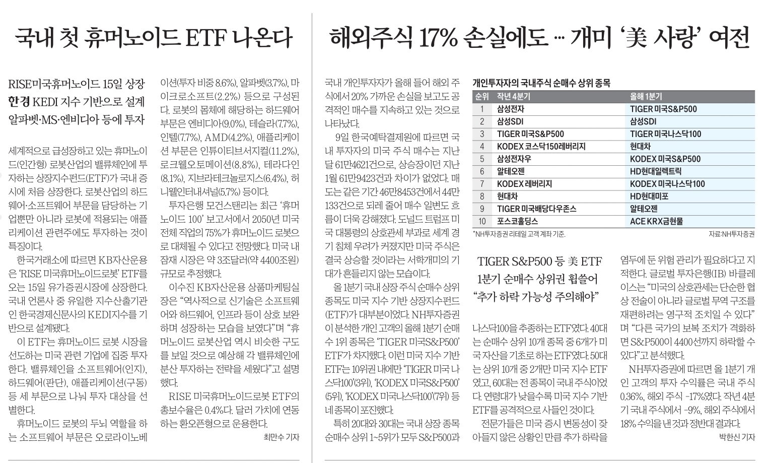 23. 국내 첫 휴머노이드 ETF나온다 해외주식 17% 손실에도 - 개미 '美 사랑' 여전