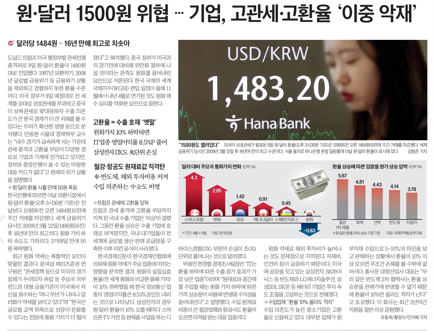 14. 원.달러 1500원 위협 - 기업-고관세. 고환율 '이중 악재'