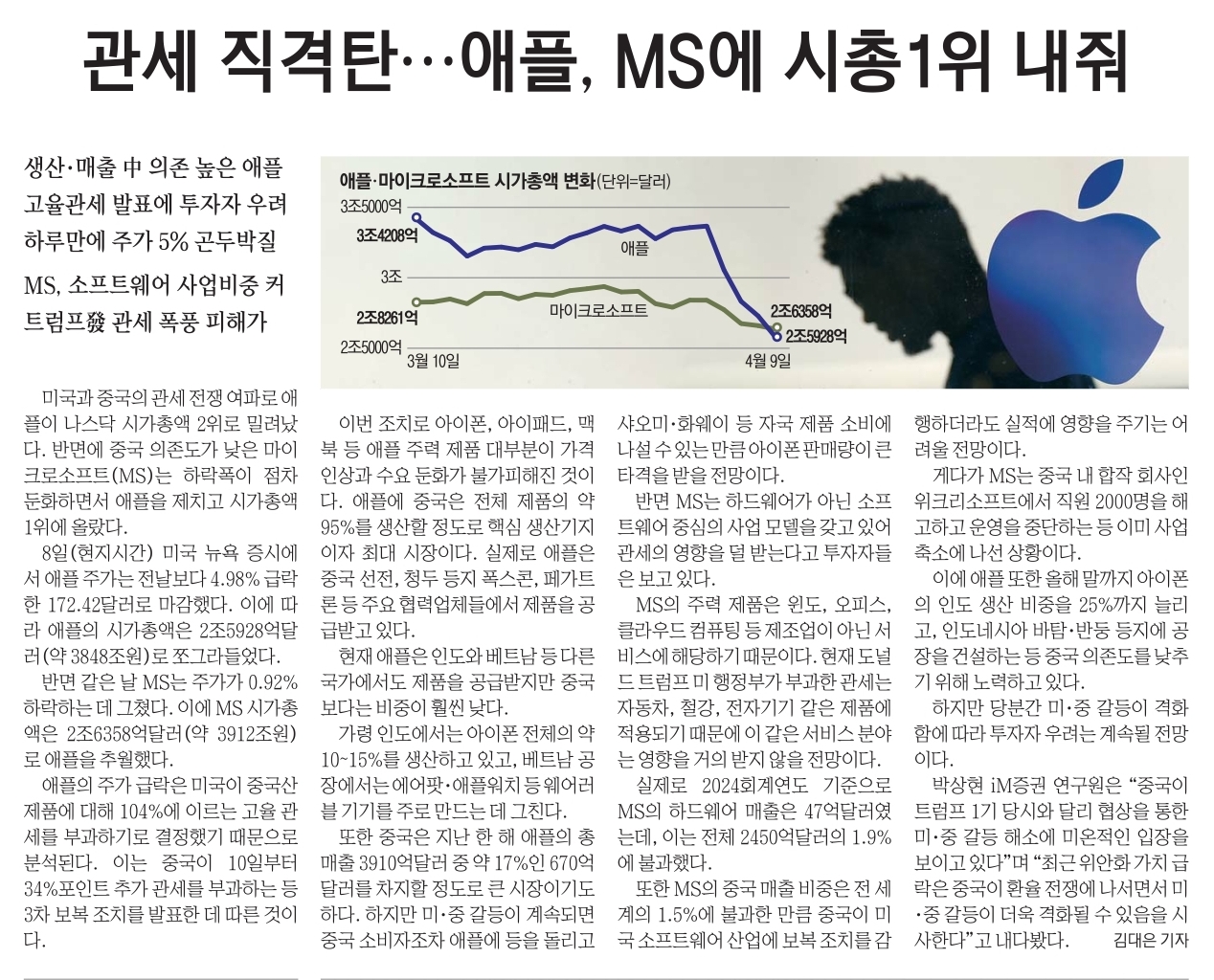 25. 관세 직격탄 - 애플 MS에 시총 1위 내줘