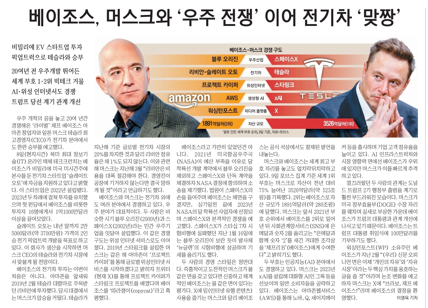 27. 베이조스 머스크와 '우주전쟁' 이어 전기차 '맞짱'