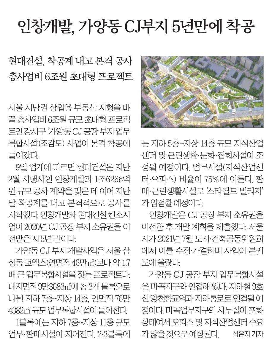 8. 인창개발, 가양동 CJ부지 5년만에 착공