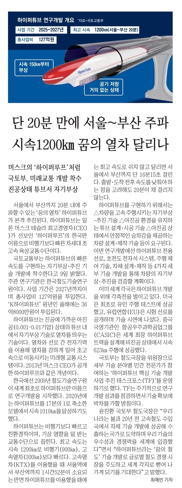11.단 20분만에 서울-부산 주파 시속 100KM 꿈의 열차 달리나