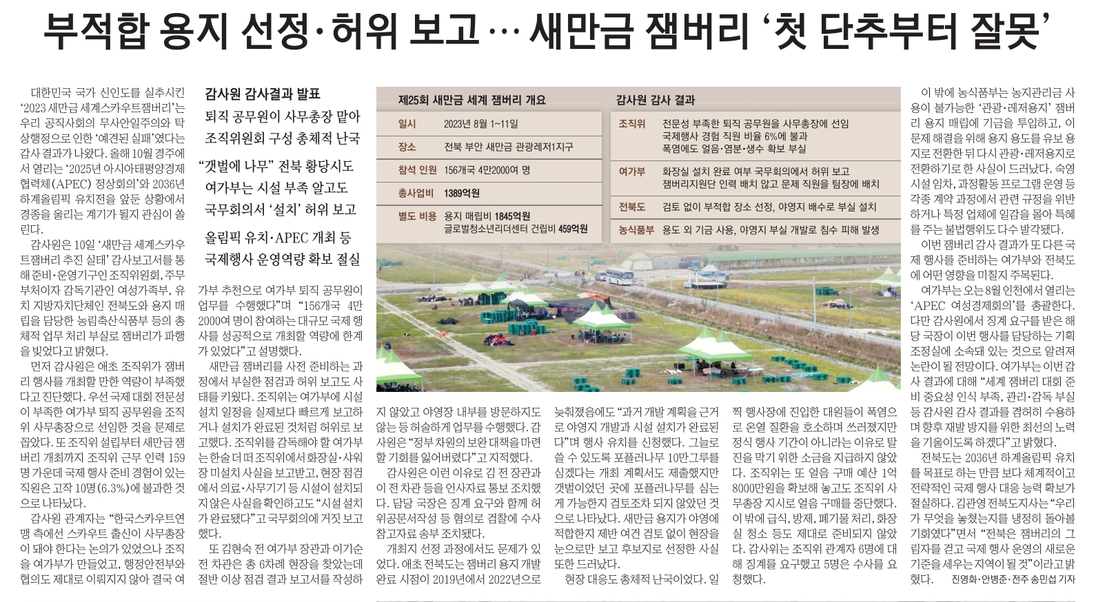 29. 부적합 용지 선정. 허위 부고 -- 새만금 잼버리 '첫 단추부터 잘못'