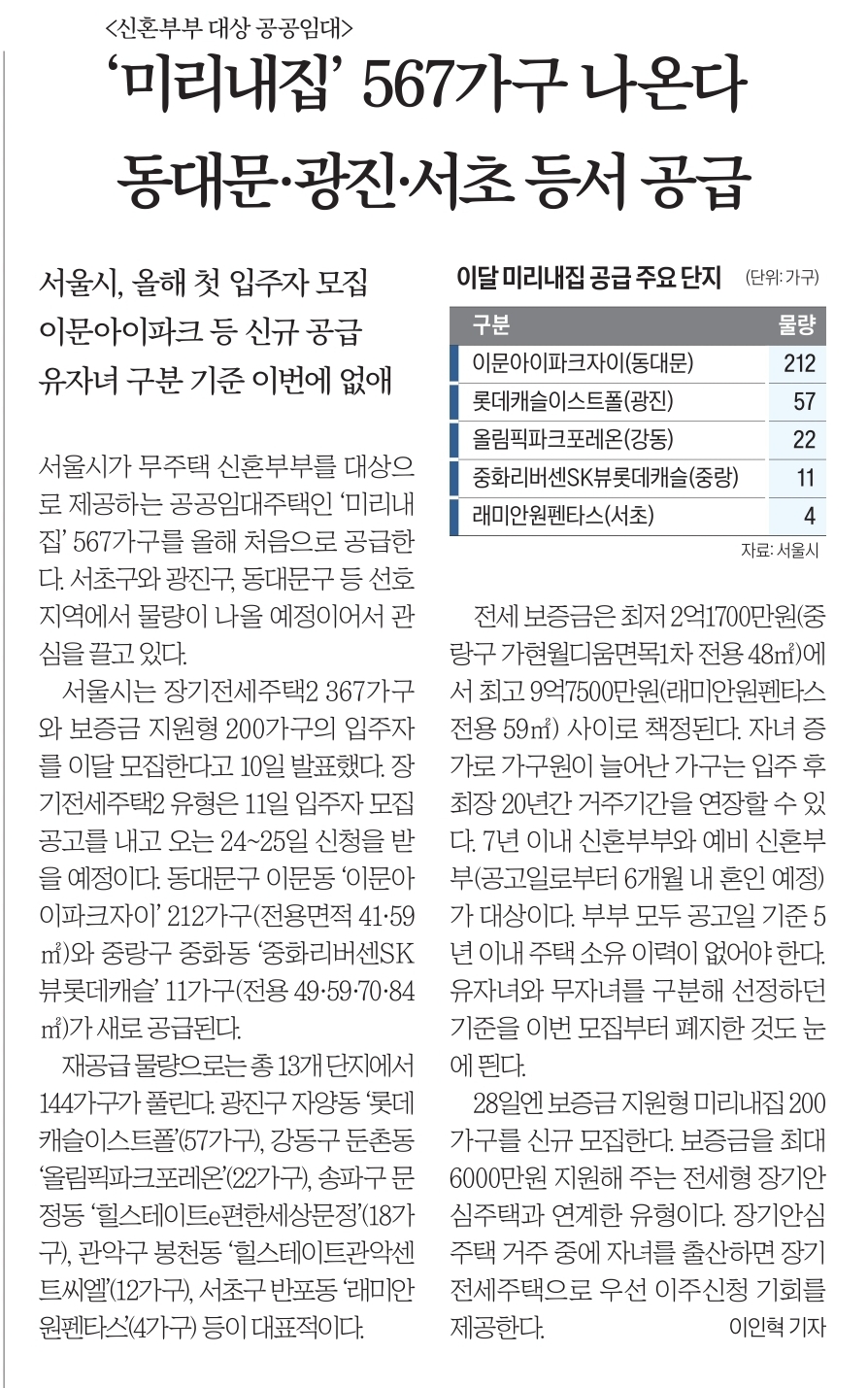 9. '미리내집' 567가구 나온다 동대문. 광진. 서초 등서 공급