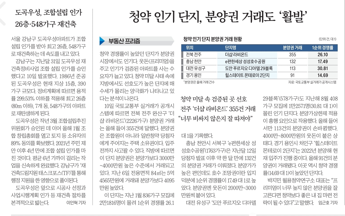 8.  청약 인기 단지,  분양권 거래도 '활발'
