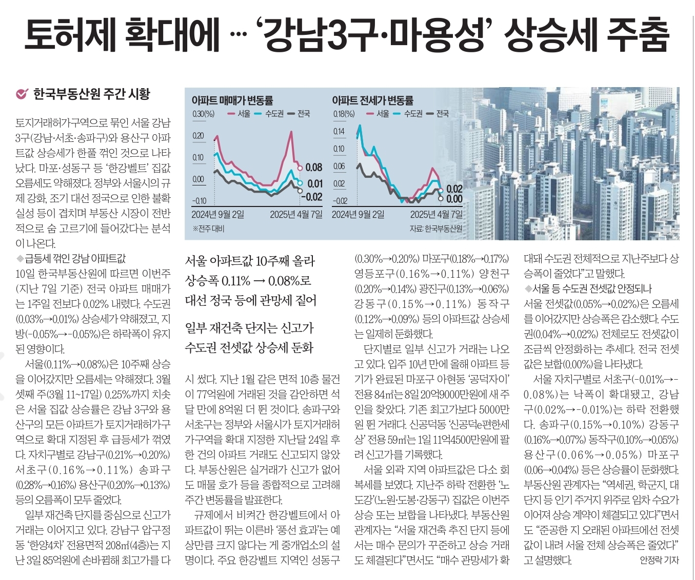 2. 토허제 확대에 ---강남3구 마용성 상승세 주춤