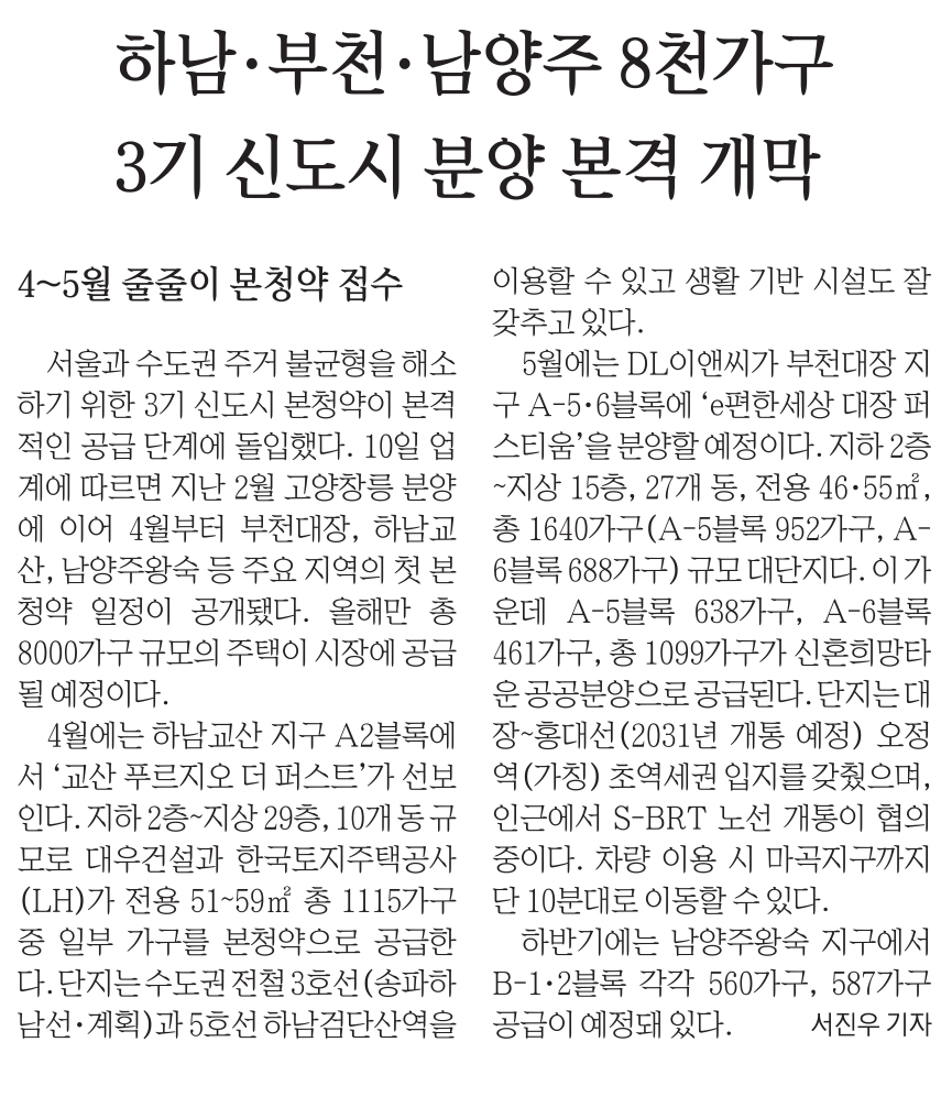 6.  하남. 부천. 남양주 8천가구 3기 신도시 분양 본격 개막