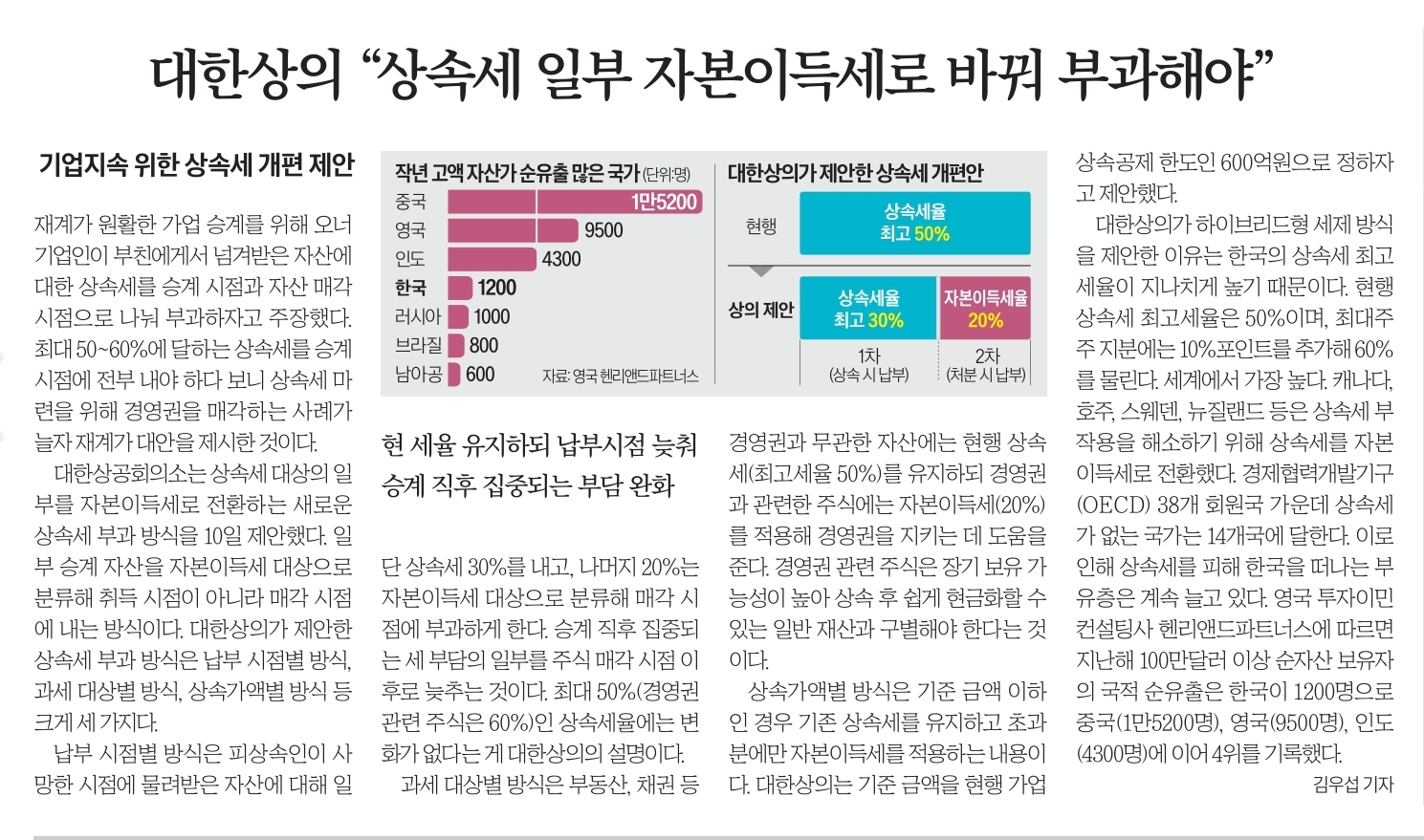 12.  대한상의  "상속세 일부 자본이득세로 바꿔 부과해야"