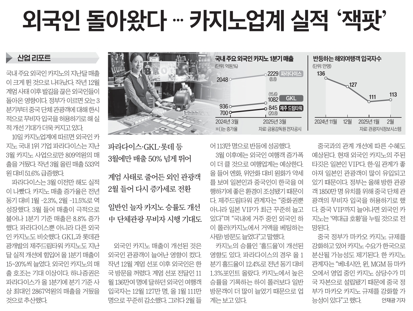 17. 외국인 돌아왔다.-- 카지노업계 실적 '잭팟'