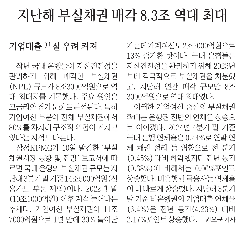 21.  지난해 부실채권 매각 8.3조 역대 최대