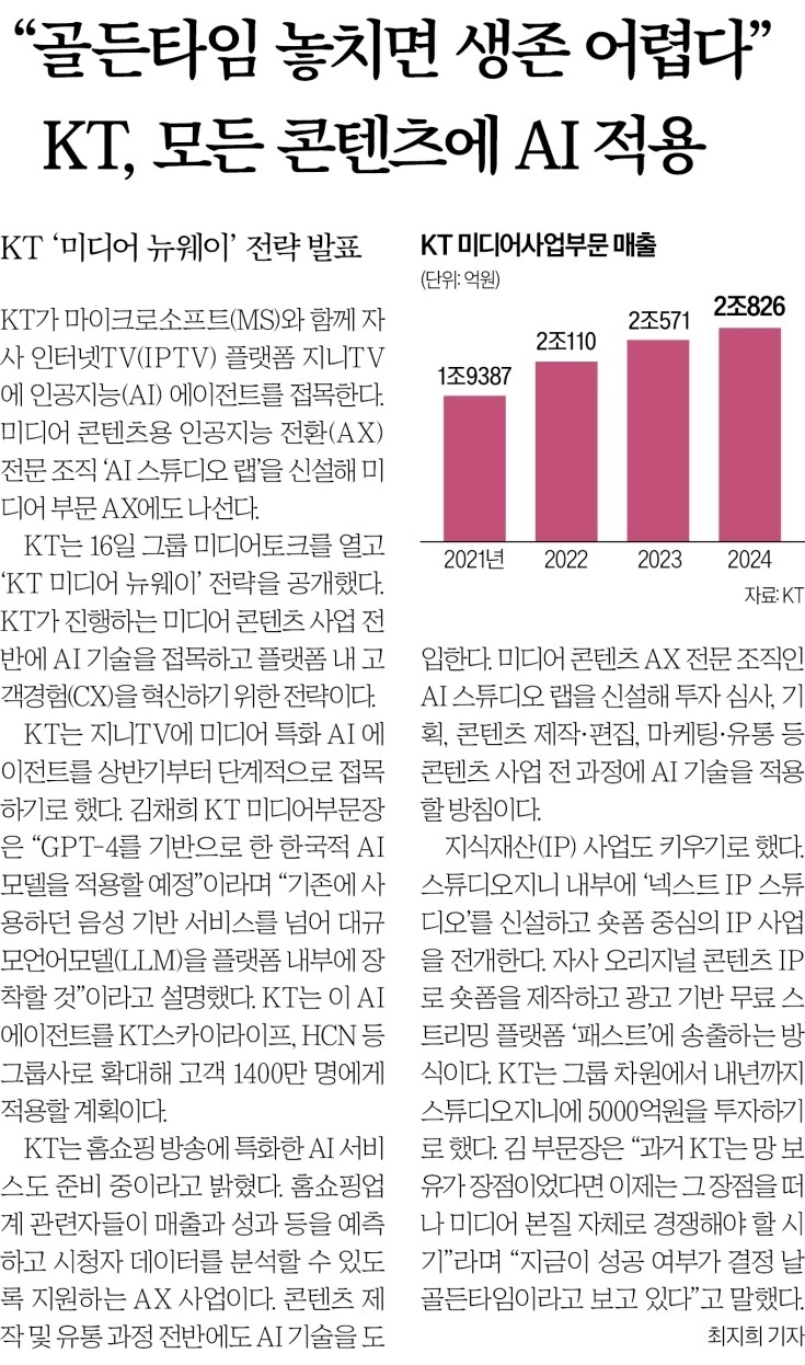 20. "골든타임 놓치면 생존 어렵다" KT, 모든 콘텐츠에 AI적용
