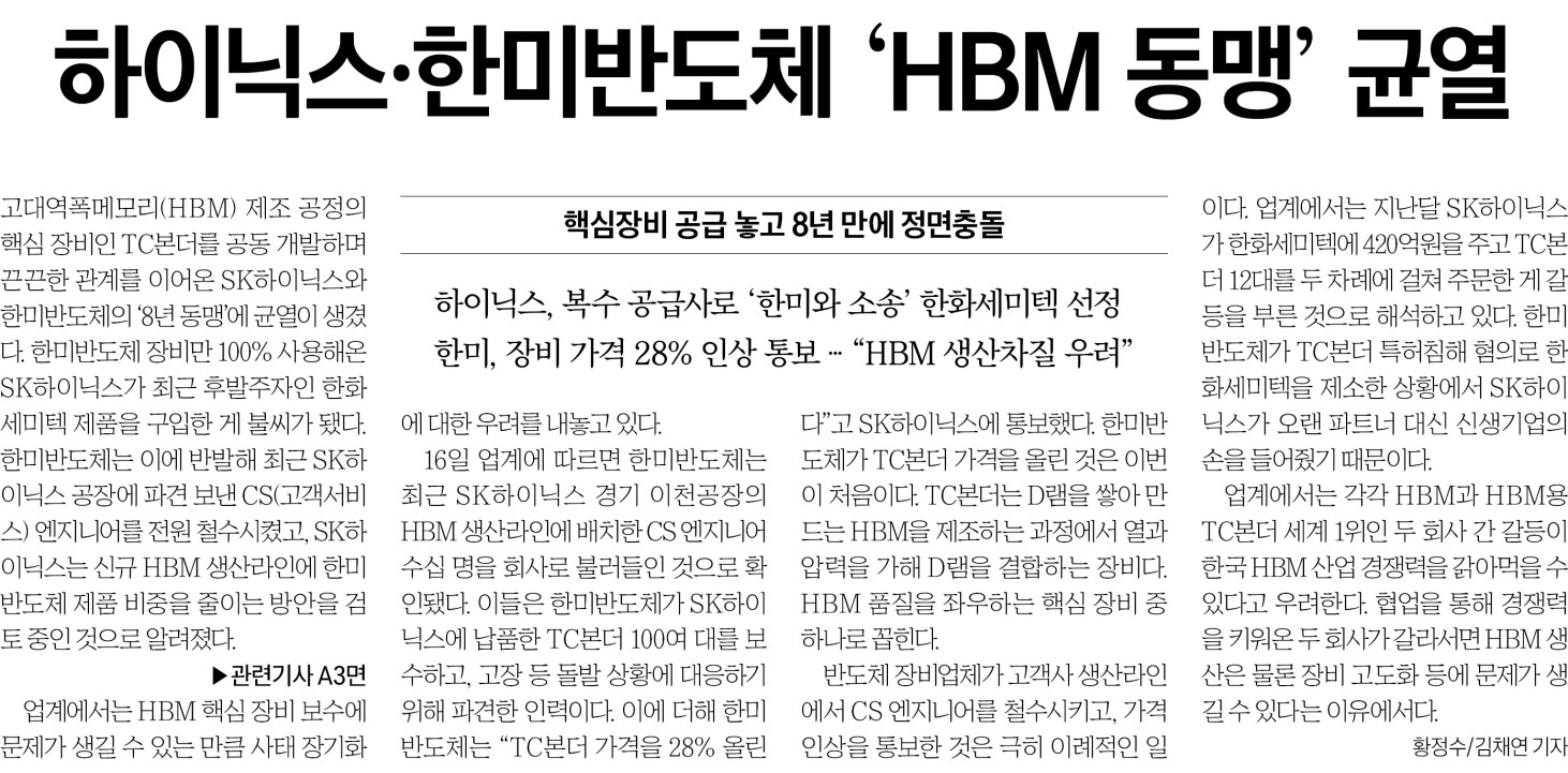 3. 하이닉스, 한화에 주문하자 -- 한미반도체 " HBM 라인서 직원 빼"