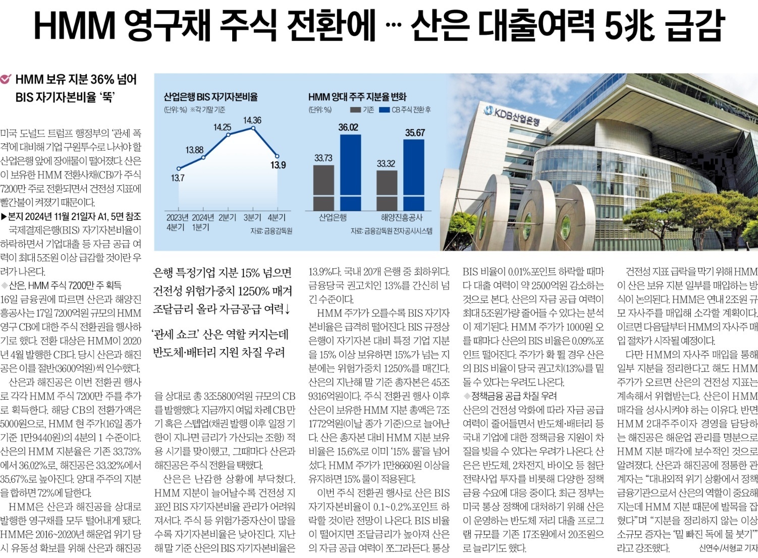 2. HMM 영구채 주식 전환에 -- 산은 대출여력 5兆 급감