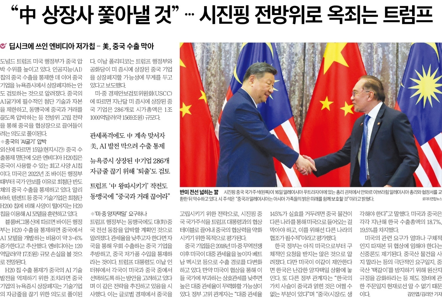 1. "中 상장사 쫒아낼 것" -- 시진핑 전방위로 옥죄는 트럼프