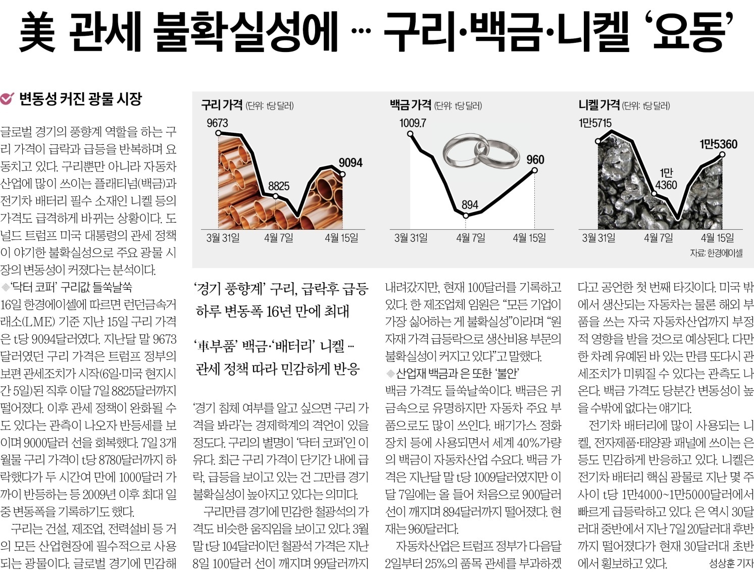 25. 美관세 불확실성에 -- 구리. 백금, 니켈 '요동'
