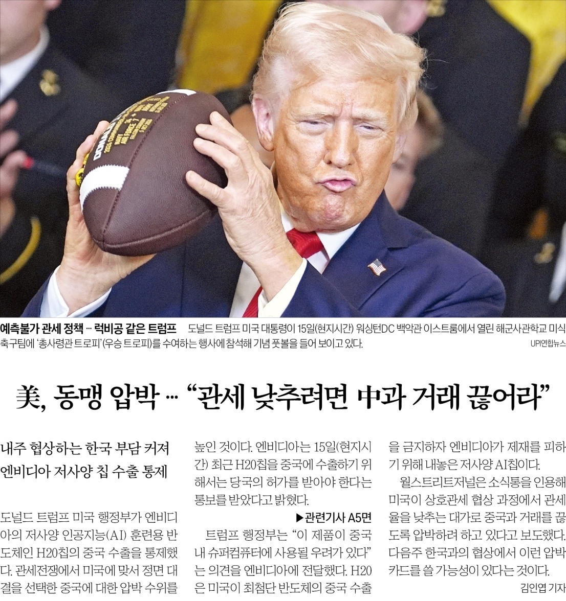 5. 美, 동맹 압박 -- "관새 낮추려면 中과 거래 끊어라"