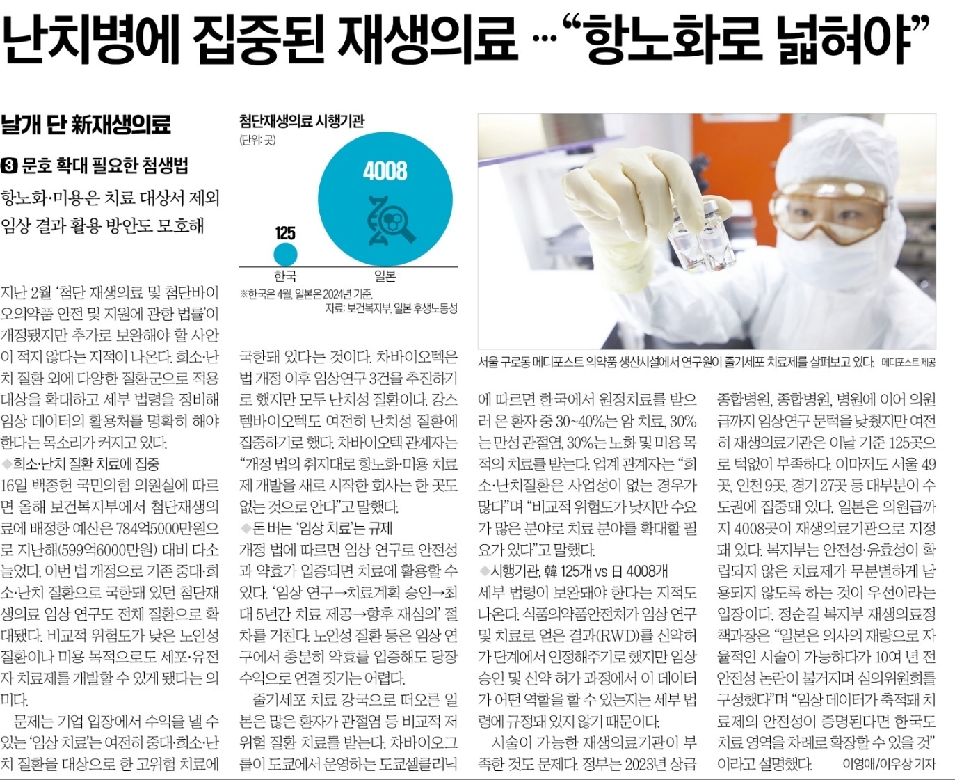 11. 난치병에 집중된 재생의료 -- "황노화로 넓혀야"