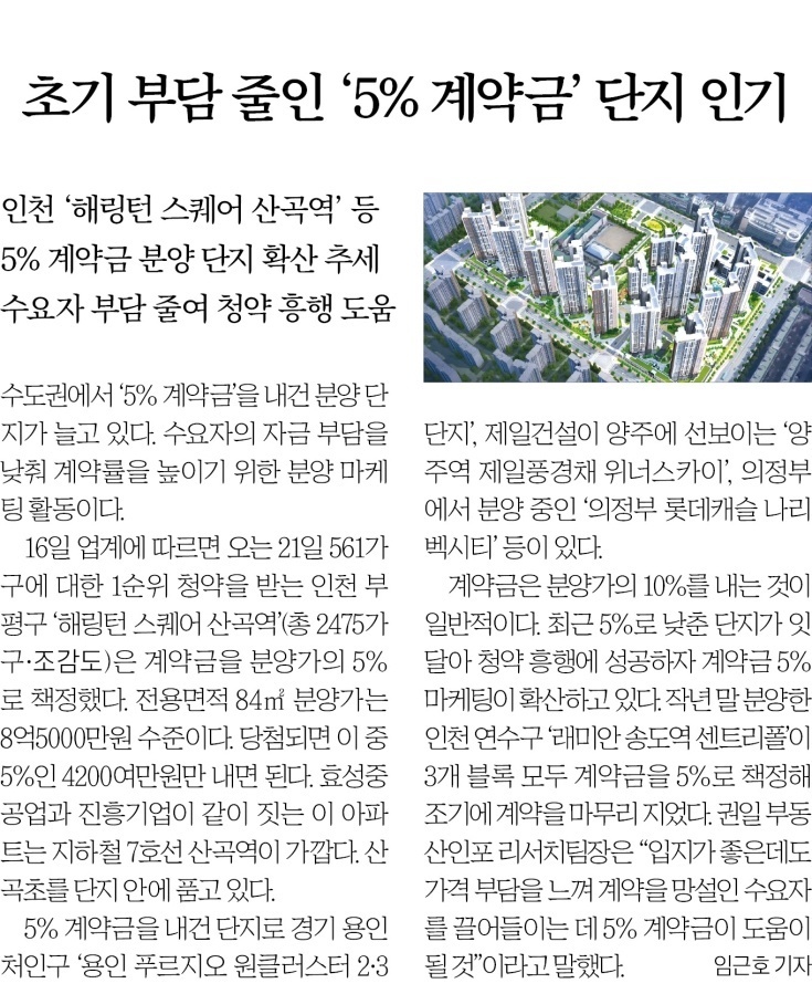 8. 초기 부담 줄인 '5% 계약금' 단지 인기