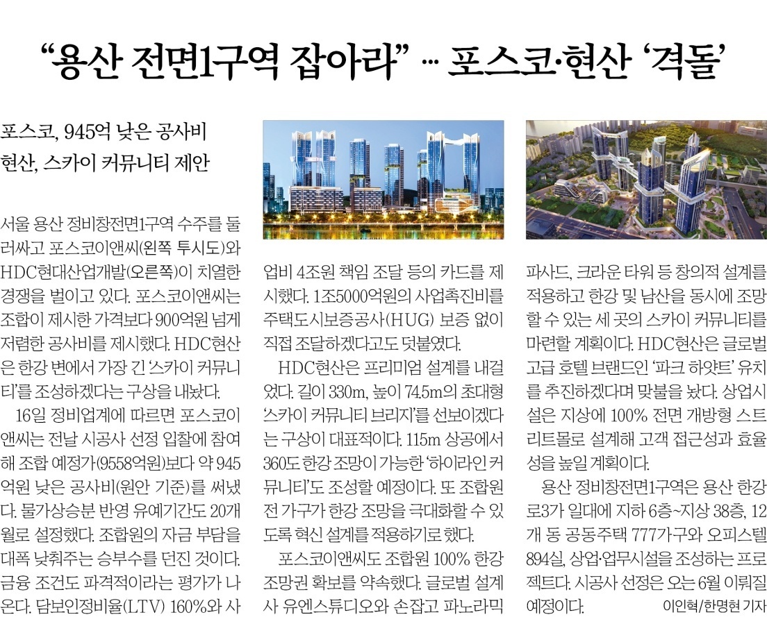 13. "용산 전면1구역 잡아라" -- 포스코. 현산 '격돌'