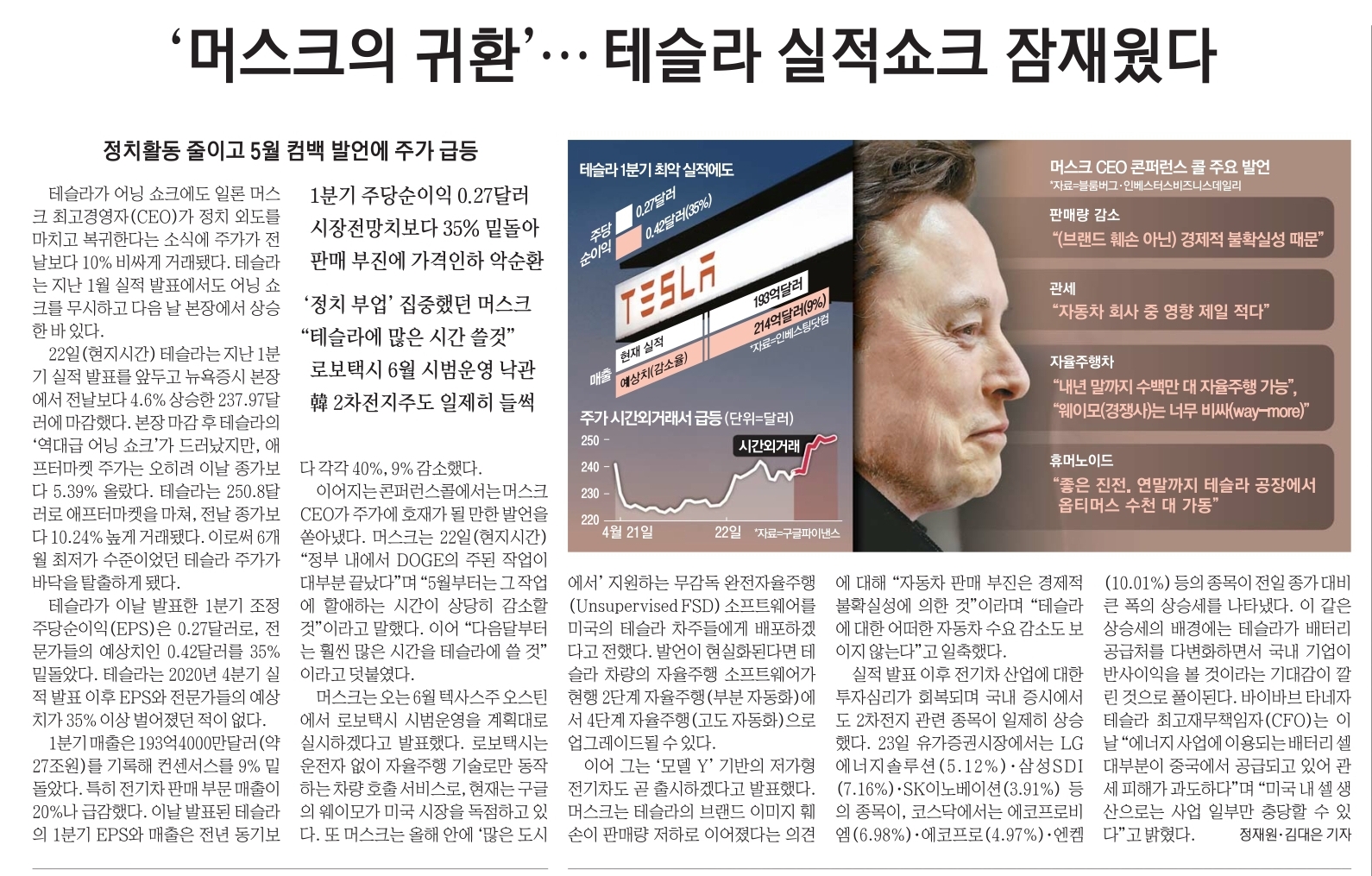 24.  '머스크의 귀환'  --  테슬라 실적쇼크 잠재웠다