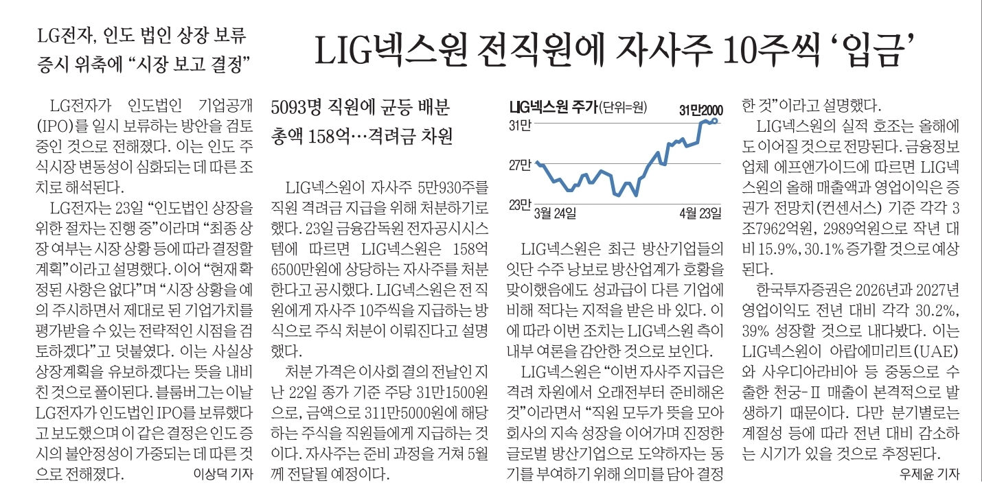 19.  LIG넥스원 전직원에 자사주 10주씩 '입금'