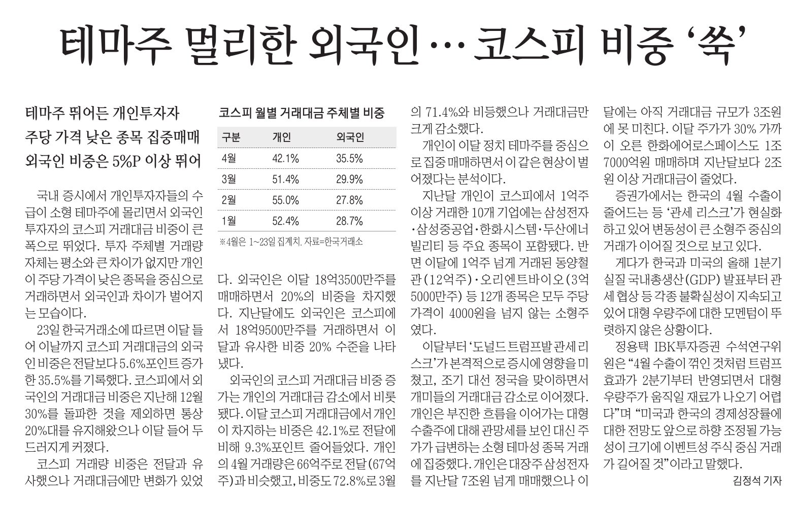 15.  테마주 멀리한 외국인  --  코스피 비중 '쑥'